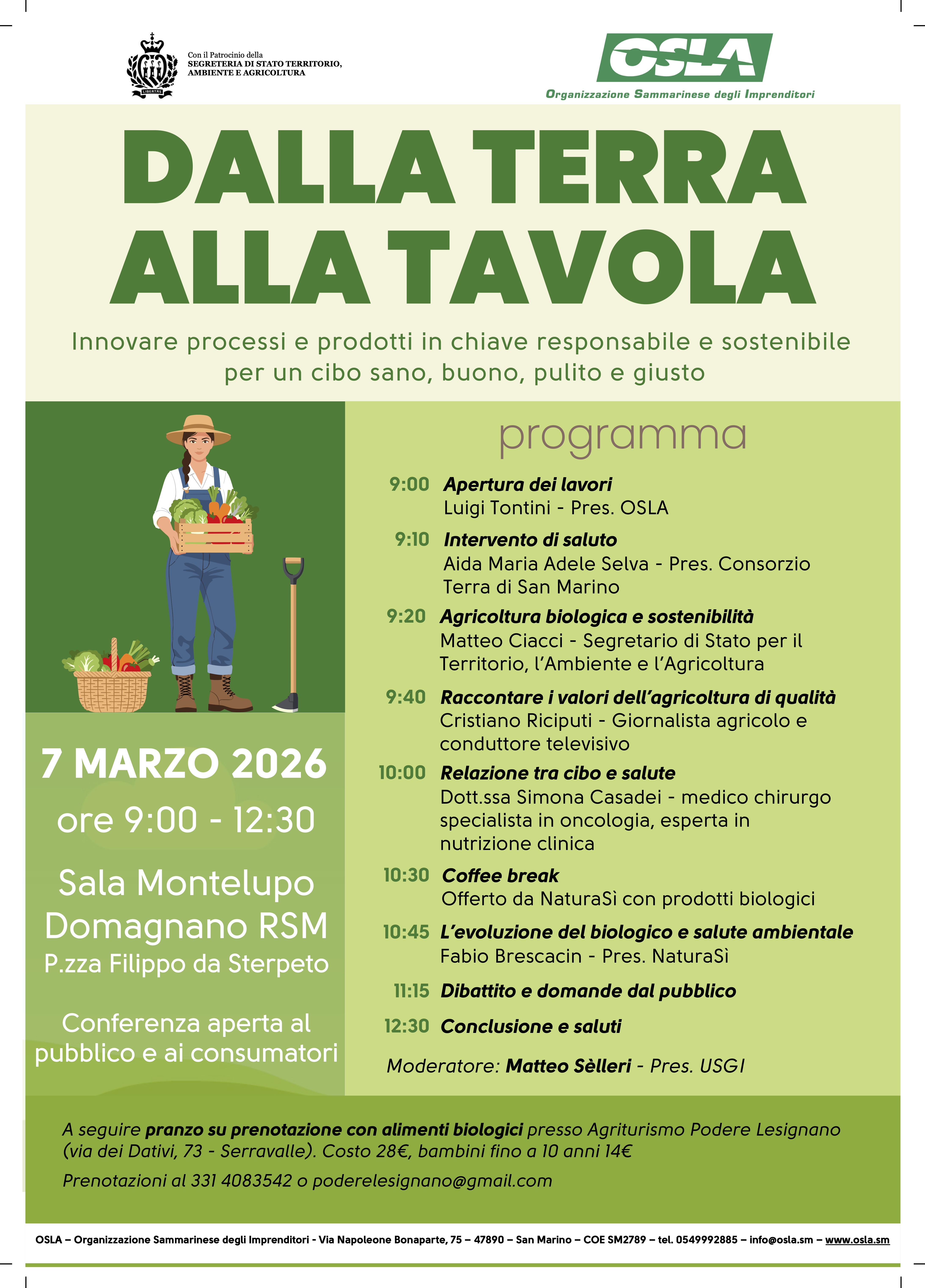 Il territorio sammarinese, enclave nel contesto italiano, dovrà tenere conto di quanto sta avvenendo attorno ai nostri confini. Occorre un serrato confronto perché rilanciare agricoltura e zootecnia significa sostenere produzioni sane, buone, pulite, giuste e orientate alla certificazione biologica, tutelando al contempo paesaggio, biodiversità e presidio del territorio. In questa prospettiva OSLA-GLAAS conferma il proprio impegno a promuovere un dialogo costruttivo e concreto per garantire futuro e stabilità alla filiera locale.